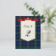Belle carte de numéro de table de mariage à carreaux tartan écossais réalisée avec le beau tartan bleu, vert, jaune et rouge du clan Smith. Une zone de texte de couleur crème décorative, au milieu, comporte des graphiques d'un ruban de style bannière en satin rouge, en haut. Des graphiques d'un symbole d'amour écossais Luckenbooth de ton doré ornent le milieu du ruban. Le texte en noir est entièrement personnalisable pour répondre aux besoins de votre réception. Produits de mariage assortis disponibles. Personnalisez-en un pour chaque table à votre réception de mariage.