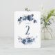 Numéro de table de mariage à l'aquarelle bleue