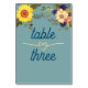 Numéro de table de mariage élégant, rustique, moderne, botanique, boho, floral poussiéreux bleu avec tournesol, cœur de corde en faux or et calligraphie tendance.