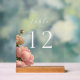 Élégant et chic. Ce charmant numéro de table de mariage en acrylique présente un ensemble élégant d'accents de rose et une police contemporaine en blanc.