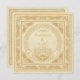 Cette carte de numéro de table de mariage celtique comporte des motifs d'animaux entrelacés celtiques sur la bordure avant extérieure et les coins entourant l'anneau traditionnel irlandais Claddagh avec les mains tenant un cœur (de dessins de spirale celtiques) avec une couronne symbolisant l'amitié (mains), l'amour (cœur) et la loyauté (couronne). L'anneau est complété par un travail de nœud celtique traditionnel. La texture de fond est dérivée d'un ancien manuscrit médiéval. Le dos comporte également cette texture de fond médiévale et a également une bordure de nœuds celtiques en or classique.