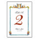 Elégante carte de Mariage italien Numéro de table avec aquarelle peinte à la main vintage de poterie italienne motif en Terra-cotta, or et blues.
