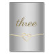 Numéro de table de mariage simple, minimaliste, moderne en faux feuilletage argent avec écriture calligraphiée et corde dorée en forme de cœur
