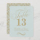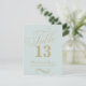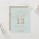 Élégante carte de calligraphie bleu turquoise pastel et or avec un monogramme orné et des accents de design en rouleau, y compris un beau motif damassé au dos de la carte.