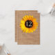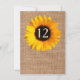 Carte de numéro de table de réception de mariage rustique chic, réalisée dans un style toile de jute marron, avec des graphiques d'un beau grand tournesol jaune. Personnalisez le numéro pour chaque table de votre réception. Des produits de mariage assortis sont disponibles.