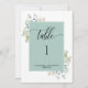Aidez vos invités à trouver leur table avec cette élégante carte de numéro de table à motif de verdure. Cartes de plan de table assorties disponibles. Cadre vert avec des détails d'aquarelle de verdure délicate montrant votre numéro de table personnalisé avec le(s) nom(s) et l'événement. Cartes double face pour que les invités puissent regarder des deux côtés, avant ou arrière. Espace clair tout autour vous donnant la liberté d'utiliser toutes sortes de porte-noms ou cadres. Détails de calligraphie manuscrite moderne. Verdure dans un beau mélange de teintes vertes, bleues, jaune, beige et terre cuite. Également disponible avec cadre blanc, bleu brume et beige. Avoir tous les numéros de table de la même couleur ou mélanger les couleurs selon le thème de couleur de votre événement. Fait partie de notre collection "Mariage et événements élégants à