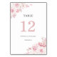 Numéro de table de mariage floral aquarelle rose