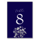 Numéro de table de mariage floral bleu royal