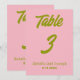 Numéro de table de mariage funky couleur vert rose