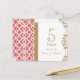 Elégante, élégante et belle carrelage marocain d'inspiration mariage carte de numéro de table avec une teinte fuchsia rose chaud et or géométrique design motif et or hued français style baroque fleuris. Cette carte haut de gamme et luxueuse est parfaite pour une mariage à thème marocaine, arabe ou aladdin. L'avant et l'arrière de ces cartes de numéros personnalisées peuvent être personnalisés avec les noms de la mariée et du marié et la date du mariage. Oeuvre et design © Chrissy H. Studios, LLC. Tous droits réservés.