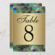 Numéro de table de mariage Plume de Paon Doré