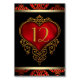 Cartes de numéro de table de mariage rouge, noir et or avec un cœur en satin rouge riche et un fond damassé rouge, noir et or. Cette élégante carte de numéro de table de mariage rouge, noir et or est facilement personnalisable avec les détails de votre événement. Ajoutez simplement le numéro de table et il sera automatiquement placé des deux côtés, ajoutez-le à votre panier et faites-le autant de fois que nécessaire pour le nombre de tables.