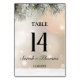 Numéro de table de Noël élégant et moderne avec sapin et neige dans des tons blancs, argent et rose. Vous pouvez modifier les noms, la date et l'image.