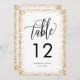 Ce numéro de table de réception de mariage tendance présente une bordure scintillante de paillettes dorées fausses et peut être personnalisé avec votre monogramme de mariage et la date !