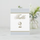Terminez la table de votre réception de mariage avec ce numéro de table à rayures simples en bleu français.