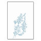 Carte classique à motif floral élégant avec une bordure simple. Ce dessin est en bleu océanique sur un arrière - plan blanc.