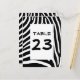 Zebra rayures motif en noir et blanc avec la place pour un numéro de table. Vous pouvez customiser et effacer le mot "Table" et centrer le numéro.