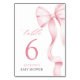 Numéro de table du Baby shower de ruban rose