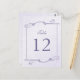 Cette belle carte Table Number avec la boîte à défilement violet et le numéro personnalisable a l'arrière - plan lavande correspondant à utiliser avec le jeu Columbine Bouquet Mariage.