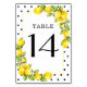 La carte numéro de tableau affiche à l'avant et à l'arrière (double face) des branches de citron aquarelle et des pois. Les articles sont imprimés exactement comme ils apparaissent sur votre écran lorsque vous ajoutez au panier, donc personnalisez et ajoutez chaque numéro de table dont vous avez besoin à votre panier individuellement.