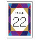 Une belle bordure en blocs de couleur forme un bijou abstrait en bleu marine, violet violet, rouge rubis, bleu turquoise et or ornent cette carte de numéro de table moderne. Les blocs de couleur ont un contour de parties scintillant or.