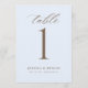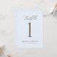 Moderne minimal élégante calligraphie Script Numéro de table Élevez votre réception de mariage avec ces numéros de table de script de calligraphie étonnants, modernes, minimalistes et élégants. Conçus dans des couleurs classiques bleu clair et romain Café, ces numéros de table sont le moyen parfait pour guider vos invités vers leurs sièges assignés. L'élégant script de calligraphie, avec le numéro de table que vous avez choisi, vos noms, la date et l'emplacement de l'événement, ajoute une touche de sophistication et de romantisme. La conception est recto verso, donc ce que vous changez d'un côté sera automatiquement mis à jour de l'autre. Cela signifie que vous pouvez facilement customiser les deux côtés pour correspondre à votre thème mariage et vos préférences. Ces numéros de table sont non seulement fonctionnels mais aussi un bel ajout à votre décor de table. Parfaits pour une variété de styles mariages, du classique au contemporain, ces numéros de table impressionnent vos invités.