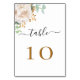 Un arrière - plan blanc chic. Décoré d'un rose blanc aquarellé et de feuilles d'eucalyptus verts, sprigs, verdure, feuilles faux or. Personnalisez et vos numéros de table. Lettres noires et dorées.