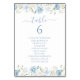 Numéro De Table Elegant Blue White Floral Crest Wedding
