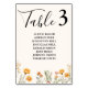Numéro De Table Elegant Boho Weadow Fleur sauvage Mariage ivoire
