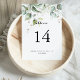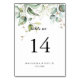 Cet élégant numéro de table mariage de calligraphie or vert est parfait pour un mariage simple. Le design se compose d'or dessiné à la main et de feuilles d'eucalyptus verts botaniques, inspirant la beauté artistique. Il s'agit d'un numéro de table recto-verso. Ajoutez chaque numéro de table dont vous avez besoin à votre panier individuellement.