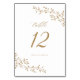 Elegant Leaf Branch Botanical Gold Mariage Numéro de tableau. Élégant Mariage de script de calligraphie Numéro de table