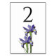 Cet élégant design floral présente des iris violets. Les magnifiques iris violets sont placés sous le numéro de tableau. Il s'agit de l'élégant design floral mariage idéal pour n'importe quel thème mariage. Design élégant de mariage de fleurs iris avec des éléments modernes. Des invitations de mariage et d'autres articles de papeterie sont également disponibles.