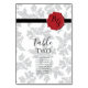 Ce design présente un élégant motif en feuille vintage et une image personnalisée de sceau de cire. L'arrière - plan damassé à motifs de feuilles grises contraste avec le ruban noir et le sceau de cire rouge. Le mélange de gris, de rouge, de noir et de blanc crée un style chic, chic et chic. Design élégant de numéro de table de mariage avec des éléments modernes. La configuration simple de la typographie lui donne un style distinct. Des invitations de mariage et d'autres articles de papeterie sont également disponibles. Customisez le numéro et achetez chaque numéro de table individuellement en fonction du nombre de numéros de table dont vous avez besoin.