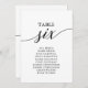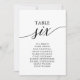 Ces cartes de numéro de table élégantes noires 6 pour plan de table sont parfaites pour un mariage simple. Le design neutre présente une carte minimaliste décorée d'une typographie romantique et fantaisiste. La carte est imprimée recto-verso.