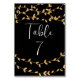 Noir et blanc romantique et élégant avec Mariage Feuille d'or Numéro de table conçu avec des feuilles de couleur or douce et texte blanc sur un arrière - plan noir. Le texte comprend : Tableau et un nombre. Pour personnaliser, il suffit d'insérer un numéro par carte commandée. L'exemple montre le numéro 7. Notez que le numéro se répète automatiquement au verso. Veuillez vérifier avant et arrière avant de commander chaque carte.