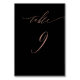 Ces cartes de table minimalistes en mariage noir et rose d'or ajouteront une touche d'élégance à vos décors de mariage. Ce modèle design simple présente un script d'or rose faux moderne qui se lit comme suit : "Tableau 9". Veuillez consulter notre boutique I Love Weddingz pour plus de cartes de numéro de table dans cet ensemble. Meilleurs voeux pour votre mariage et mariage ! Conçu par Susan Coffey.