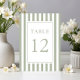 Elegant Striped Sage Green Wedding Table Number.