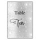 Le numéro de table est écrit avec un élégant script de style écrit à la main. Des lettres noires, un faux arrière - plan argenté avec de la poussière de parties scintillant, brillent.