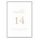 Ce numéro de table de mariage élégant avec calligraphie moderne en or est parfait pour un mariage rustique. Le design simple et élégant présente une typographie classique et fantaisiste en or. Il s'agit d'un numéro de table recto-verso. Ajoutez chaque numéro de table dont vous avez besoin à votre panier individuellement.