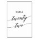 Cet élégant tableau de calligraphie noire vingt deux numéro de table est parfait pour un mariage simple. Le design neutre présente une carte minimaliste décorée de typographie romantique et fantaisiste. La carte s'imprime à l'avant et à l'arrière (double face). Les autres numéros de tableau de la collection sont vendus séparément.