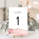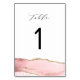aquarelle bleu et aquarelle or agate. Carte numéro de table avec calligraphie moderne.
