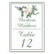 Cette carte de numéro de table de réception simple et élégante est un excellent moyen de guider vos invités vers la table droite à votre réception de mariage et sera un bel ajout à votre ensemble de papeterie de suite mariage. Il présente une conception originale dessinée à la main d'une fleur de magnolia blanche sur une tige. Oeuvre d'art originale. Copyright Leah Wiedemer