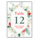 Ce magnifique panneau de numéro de table de mariage élégant présente des fleurs d'aquarelle, du feuillage et des baies. Le texte combine écriture manuscrite et polices serif pour un look élégant et moderne. C'est parfait pour un mariage de Noël ou d'hiver.