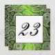 Un imprimé de satin vert profond et brillant est superposé dans un élégant motif de dentelle blanche paisley pour une carte de numéro de table de réception de mariage ou de fête élégante et unique.