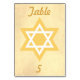 Une excellente carte de salon de table qui est tout simplement extraordinaire, ce design dispose d'un arrière - plan doré affichant votre police d'or de numéro de table. Une étoile de David en or et blanc est au centre de la carte de table. Même design sur l'avant et noir. Achetez le vôtre aujourd'hui ! Arrière - plan d'or : Michel Müller Star of David : Sonya DeHart Design http://www.sonyadehartdesign.com | http://www.sonyadehartdesign.etsy.com