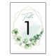 Numéro De Table Eucalyptus Vert Moderne Mariage élégant