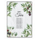 Un beau design avec des feuilles d'oliviers rustiques et des olives sur un mur blanc de style méditerranéen de l'île grecque. Un élégant numéro de table de mariage vintage parfait pour les mariages de style grec, italien et méditerranéen. Des invitations de mariage et d'autres articles de papeterie sont également disponibles. Customisez le numéro et les noms des invités et achetez chaque numéro de table individuellement en fonction du nombre de numéros de table dont vous avez besoin.