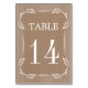 Vintage bordure feutrée avec feuilles blancs aux coins et rayures papier kraft carte de numéro de mariage de table avec une élégante bordure blanche avec feuilles et rayures sur papier d'aspect carton. Un design mariage personnalisable est idéal pour un mariage contemporain d'automne ou d'automne avec une touche vintage.