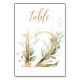 Belle carte de numéro de table avec un motif botanique - une aquarelle illustration de feuilles verts et or. Tableau 12. Veuillez vérifier tous les numéros disponibles