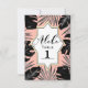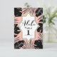 Carte de numéro de table Feuilles tropicales noires et or corail